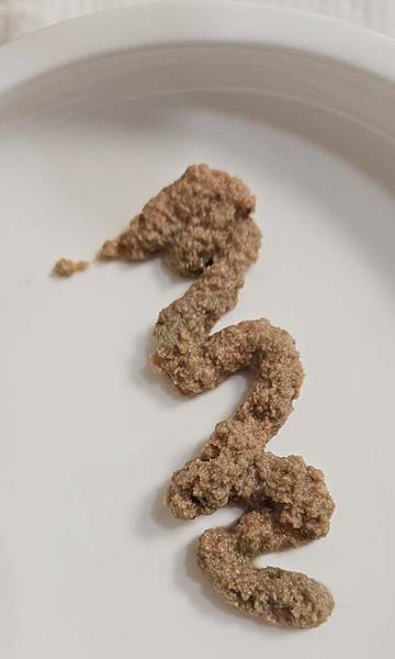 這款產地是泰國製作,在想可能是查理已經習慣吃台牌,需要時間適應,肉泥質地上我會覺得是五款中黏性較高,不會擠出來水水的,成型明顯,我覺得蠻適合額外加水