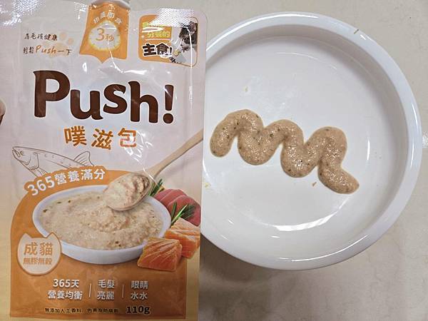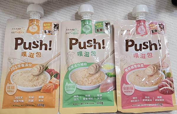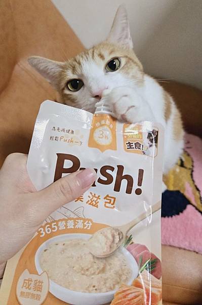 1.這款Push! 噗滋包 ,去年就有在吃,因為適口性非常棒,喜愛程度是查理甚至會伸手抓著吃!